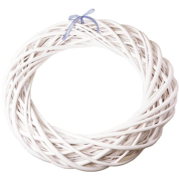Wianek wiklinowy biały z kokardką 50cm
