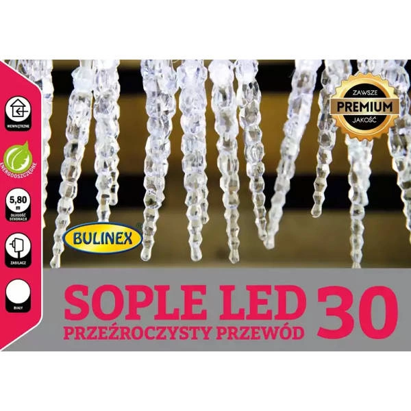 Oświetlenie świąteczne LED przygotowane w kształcie sopli i przeznaczone do stosowania wewnątrz domu. Stanowi wspaniałą dekoracją, która sprawdzi się zwłaszcza w okresie zimy i świąt Bożego Narodzenia.