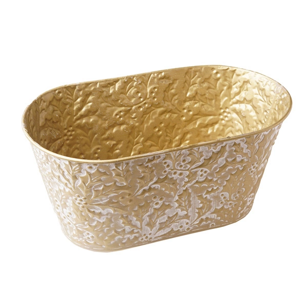 Osłonka do roślin ozdobiona wzorem ostrokrzewu. Doskonale pasuje do okresu zimy i Świąt Bożego Narodzenia.