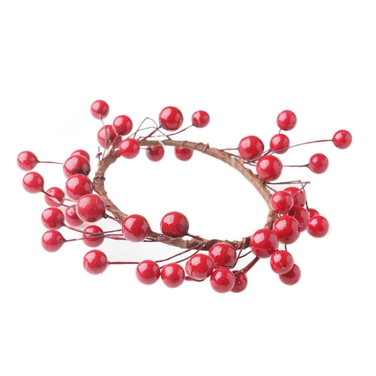 Dekoracja wykonana w formie małego wianka z czerwonymi owocami. Piękny pomysł na udekorowanie domu, zwłaszcza w okresie zimy i Świąt Bożego Narodzenia.