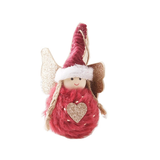 Zawieszka na choinkę przedstawiająca aniołka z materiału. Stanowi atrakcyjną formę dekoracji bożonarodzeniowej, podkreślającą klimat i nastrój Świąt.