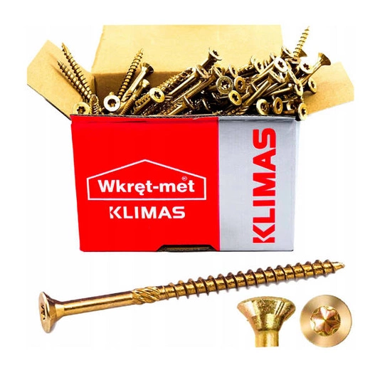 Wkręt konstrukcyjny KMWHT wykonany jest ze stali niskowęglowej pokrytej warstwą ochronną ocynku w kolorze żółtym. Wkręty stosowane są przede wszystkim do połączeń elementów konstrukcyjnych z drewna litego, klejonego oraz płyt drewnopochodnych w konstrukcjach drewnianych. Wkręty posiadają łeb stożkowy z gniazdem typu TX oraz specjalną końcówkę wiercącą przeznaczoną do połączeń w konstrukcjach drewnianych.