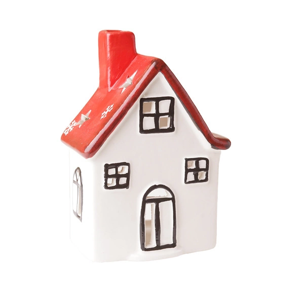 Piękny domek ceramiczny z czerwonym dachem w gwiazdki oraz otworem z tyłu na świeczkę tealight. Stanowi wspaniałą ozdobę każdego wnętrza, w którym się znajdzie, a w czasie świąt Bożego Narodzenia nabiera dodatkowego czaru.