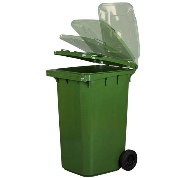 Kosz na śmieci ogrodowy z klapą 240L zielony