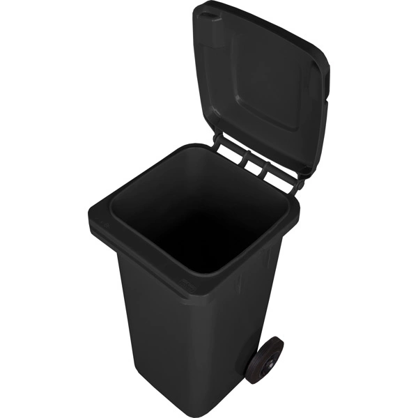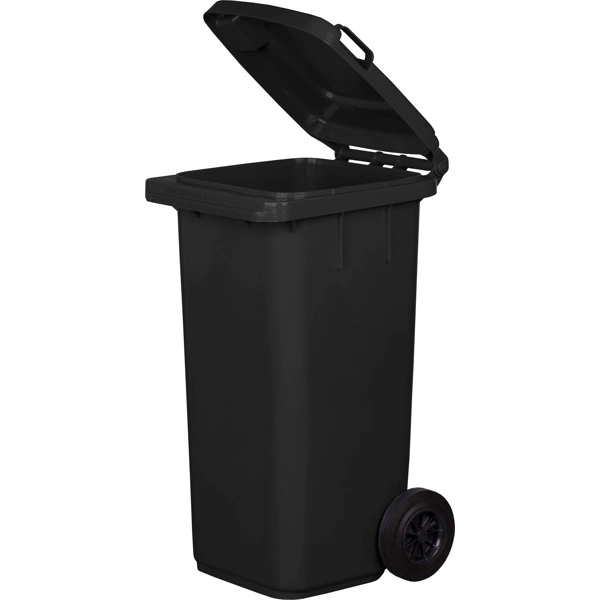 Kosz na śmieci ogrodowy z klapą 120L czarny doskonale sprawdzi się do zbierania odpadów komunalnych w ogrodach, na posesjach prywatnych, przy domach jednorodzinnych, w firmach i na terenach wspólnot mieszkaniowych. Dzięki odporności na warunki atmosferyczne i łatwości transportu, jest niezastąpiony podczas prac porządkowych przez cały rok.