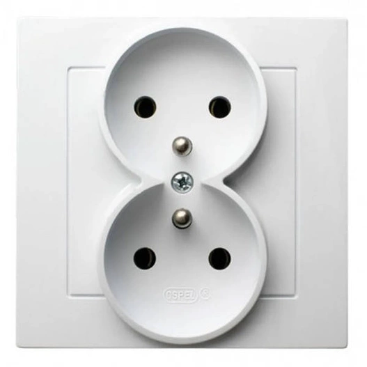 - Gniazdo podwójne z uziemieniem białe Ospel AS z ramką