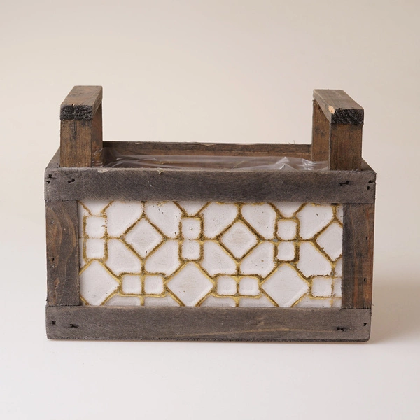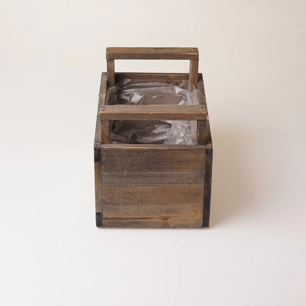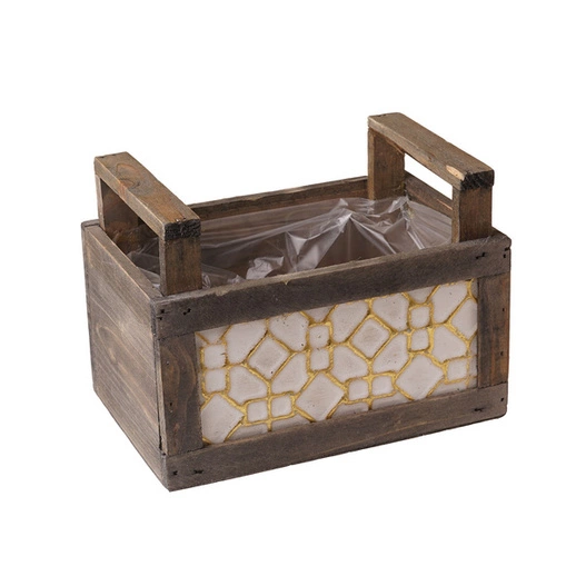 Atrakcyjna wizualnie osłonka w formie drewnianego pojemnika z uchwytami. Jest fantastycznym elementem dekoracyjnym, który podkreśla urok roślin, które się w niej znajdą.