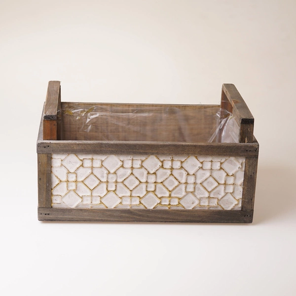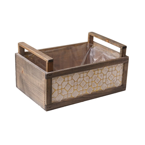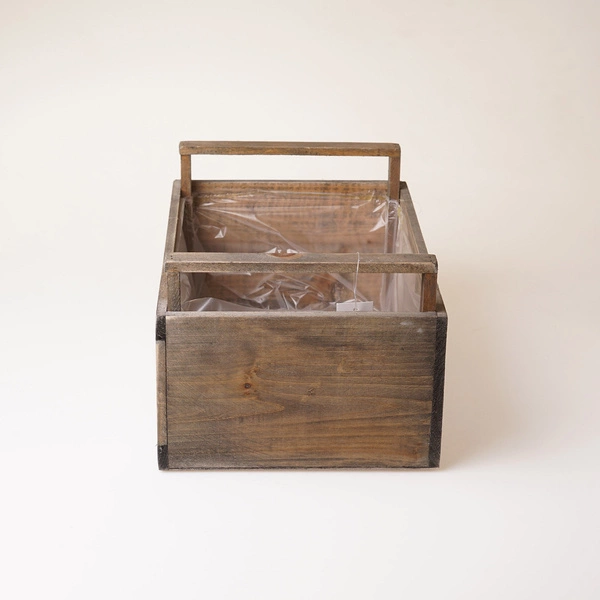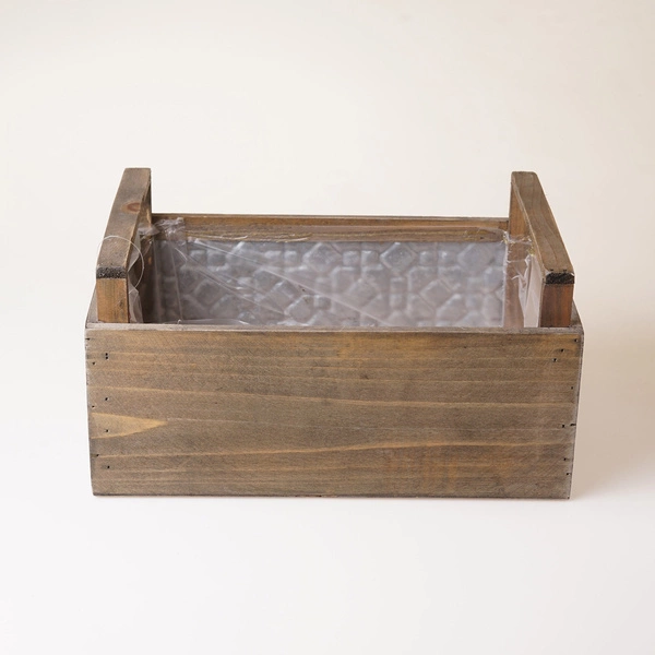 Atrakcyjna wizualnie osłonka w formie drewnianego pojemnika z uchwytami. Jest fantastycznym elementem dekoracyjnym, który podkreśla urok roślin, które się w niej znajdą.