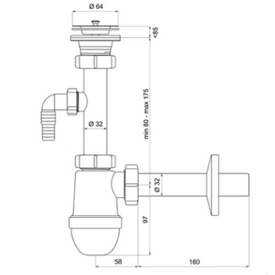 - Dodatkowe wyjście na pralkę lub zmywarkę – oszczędność miejsca i wygoda podłączenia dwóch urządzeń do jednego odpływu