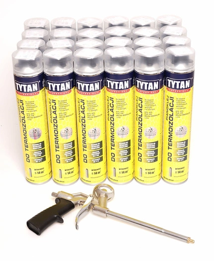 - Zestaw Tytan Pianoklej do termoizolacji 820 ml szary 24szt+ pistolet TYTAN Standard Max