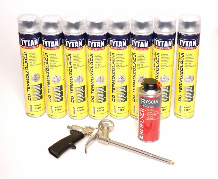 - Zestaw Tytan Pianoklej do termoizolacji 820 ml szary 8szt+ pistolet TYTAN+czyścik Koelner
