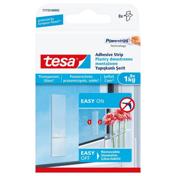 Samoprzylepne plastry sygnowane marką Tesa, są wygodnym i niezwykle skutecznym sposobem na mocowanie przedmiotów o wadze do 1kg. Nie wymaga wiercenia w ścianie, dzięki czemu nie niszczymy powierzchni, a na dodatek, jeśli chcemy usunąć przedmiot i plaster - jest to możliwe, bez pozostawiania śladów. Przygotowane w wersji bezbarwnej, doskonale nadają się do powierzchni szklanych i przezroczystych.