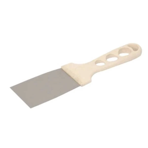 Nierdzewna szpachla przeznaczona do licznych prac związanych z budową i remontami. Przygotowana z kwasoodpornej stali nierdzewnej o grubości 0,4 mm. Rękojeść wykonano z kompozytu, który łączy zalety drewna i tworzywa sztucznego - doskonała przyczepność drewna i wytrzymałość tworzywa, a jednocześnie nie pęczniej pod wpływem wody.
