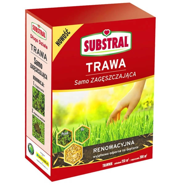 Nasiona trawy Renowacyjna 3kg Substral to profesjonalna mieszanka przeznaczona do szybkiego odnawiania oraz zagęszczania trawników. Doskonale sprawdzi się zarówno podczas tworzenia nowego trawnika, jak i regeneracji istniejących powierzchni zielonych. Specjalnie dobrane odmiany traw charakteryzują się wysoką odpornością na deptanie i intensywne użytkowanie, dzięki czemu trawnik pozostaje gęsty, zielony i estetyczny przez wiele sezonów. Mieszanka samoregenerująca się, idealna dla ogrodów, terenów sportowych i rekreacyjnych.
