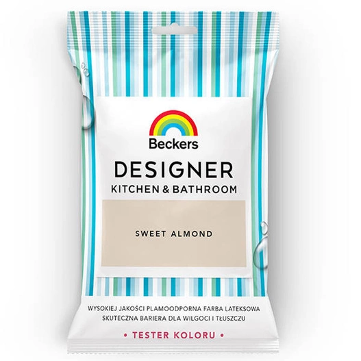 Beckers Designer K&B Sweet Almond 50ml Tester to lateksowa farba stworzona z myślą o wymagających pomieszczeniach, takich jak kuchnia i łazienka. Dzięki podwyższonej odporności na wilgoć, tłuszcz i zabrudzenia, idealnie zabezpiecza ściany przed pleśnią oraz grzybami, gwarantując czyste i zdrowe otoczenie. Tester w kolorze Sweet Almond pozwala sprawdzić efekt na małej powierzchni, zanim zdecydujesz się na pełne malowanie. Farba jest łatwa w aplikacji, nie chlapie i zapewnia modne, matowe wykończenie, które nadaje wnętrzom indywidualny charakter oraz świeży wygląd na długi czas.