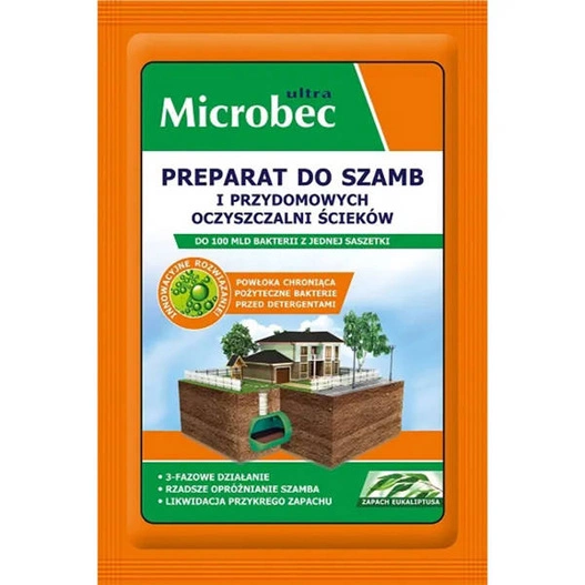 Preparat przeznaczony do biodegradacji zawartości szamba. Przy regularnym stosowaniu pozwala na zmniejszenie częstotliwości opróżniania szamba i udrażnianie systemu instalacji sanitarnej. Dodatkowo, pozostawia przyjemny zapach. Microbec zawiera wyspecjalizowane kultury bakterii oraz enzymy, które przyśpieszają naturalny proces rozkładania resztek organicznych. Nieczystości, papier, resztki roślinne oraz tłuszcze ulegają biodegradacji.