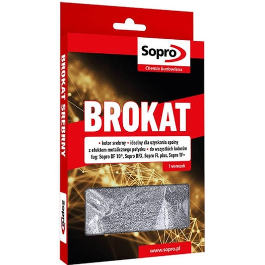 Brokat do fug Srebrny 100g Sopro to doskonały sposób na nadanie spoinom niepowtarzalnego charakteru i elegancji. Dzięki drobnej strukturze brokatu, fugi zyskują efektowny połysk, który wspaniale odbija światło i sprawia, że każda powierzchnia prezentuje się wyjątkowo. Produkt został opracowany specjalnie do fug Sopro, gwarantując łatwe mieszanie i trwały efekt dekoracyjny. Opakowanie 100 g pozwala na wygodne dozowanie i precyzyjne stosowanie w wybranych miejscach. Idealny zarówno do łazienek, kuchni, jak i reprezentacyjnych salonów, gdzie liczy się niebanalny detal wykończeniowy.