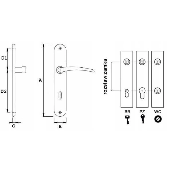 Odległość od trzpienia do dolnej śruby D2: 128 mm