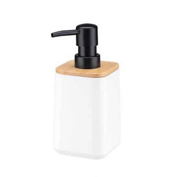 Dozownik na mydło, przygotowany w bardzo klasycznym stylu, z tworzywa, z elementem drewna bambusowego. Dzięki połączeniu materiału wykonania z kolorystyką, nadaje wnętrzu elegancji i charakteru, dopełniając tym swoje praktyczne zastosowanie. Jego kształty oparto na kwadratowej geometrii, co sprawia, że komponuje się doskonale z każdym wnętrzem.