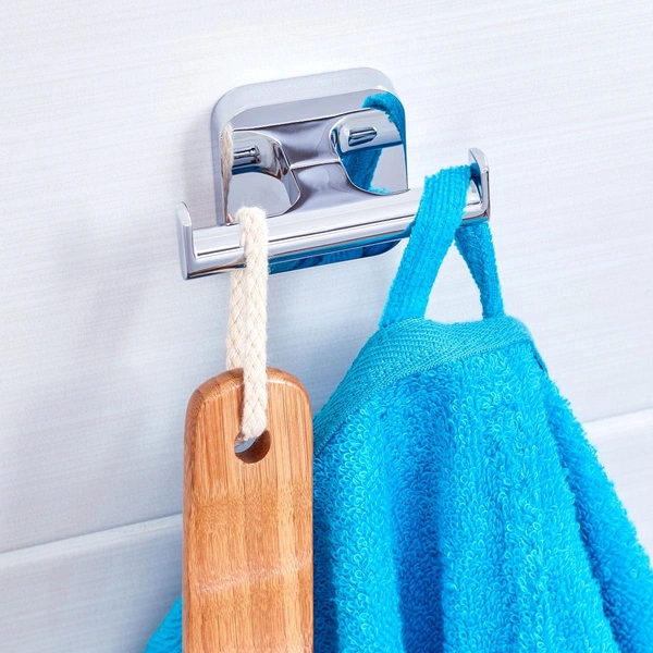 Wieszak na szlafrok Tesa Elegaant możesz zamocować tam, gdzie potrzebujesz, przy użyciu samoprzylepnego rozwiązania montażowego. Czas schnięcia, po upływie którego wieszak skutecznie przywiera do większości powierzchni, wynosi 12 godzin. Z uwagi na to, że użycie wiertarki nie jest wymagane, powierzchnia ścian czy płytek nie ulega uszkodzeniu. Wieszak o wysokim połysku cechuje stylowy i wdzięczny wygląd, który pasuje do wystroju każdej łazienki. Można w każdym momencie, bez wysiłku i bez śladu zdemontować oraz zamocować w innym miejscu przy użyciu nowego adaptera BK44, podobnie jak wiele innych akcesoriów na przybory toaletowe Tesa.