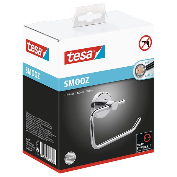 Uchwyt na papier toaletowy Tesa Smooz doskonale sprawdzi się w każdej łazience domowej, hotelowej czy biurowej. Idealny do montażu na płytkach, szkle, metalu, kamieniu naturalnym, marmurze, betonie oraz drewnie. Niezawodny wybór wszędzie tam, gdzie liczy się wygoda montażu i estetyka.