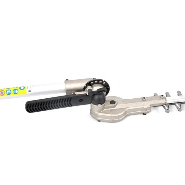 Listwa tnąca na końcu maszyny może być składana w zakresie od -30 ° do + 90 ° . Aby podnieść komfort pracy i z łatwością nadawać drzewkom ozdobnym i żywopłotom regularne kształty, co na pewno spowoduje, że nasza działka będzie wyglądała świeżo i nabierze pięknego wyglądu. Regulowane ostrze zaprojektowane zostało specjalnie do przycinania szczytów wysokich żywopłotów. W celu ułatwienia pracy, urządzenie posiada regulowaną rękojeść, silnik obraca się o 180 ° tak, że przez cały czas możemy pracować z dużą wygodą.