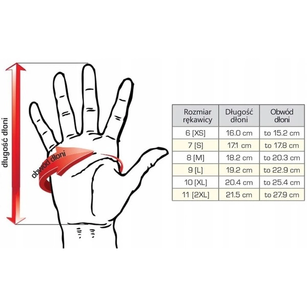 - Regularnie sprawdzaj stan wzmocnień, aby zapewnić pełną ochronę dłoni.