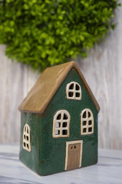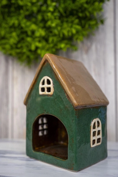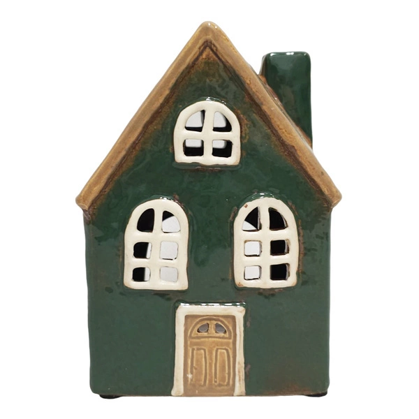 - Domek holenderski T-light ceramika zielony z brązowym dachem lampion świecznik