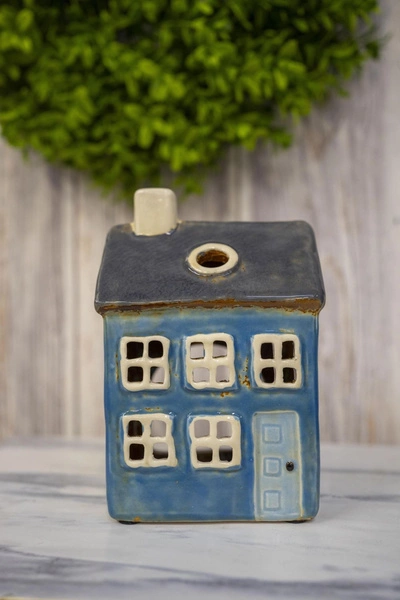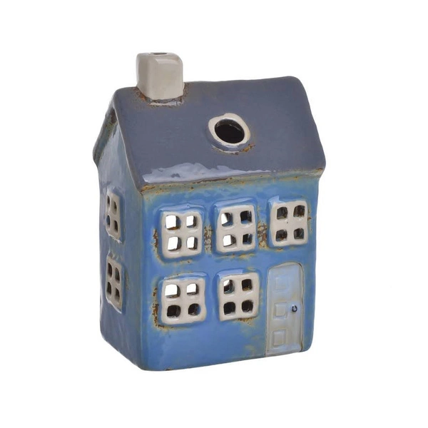 - Domek T-light ceramika niebieski z szarym daszkiem lampion świecznik