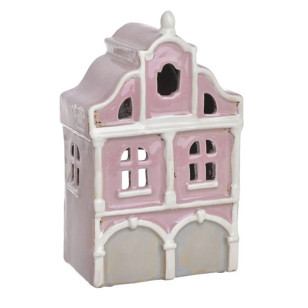 - Domek T-light ceramika dwie bramy róż i beż lampion świecznik