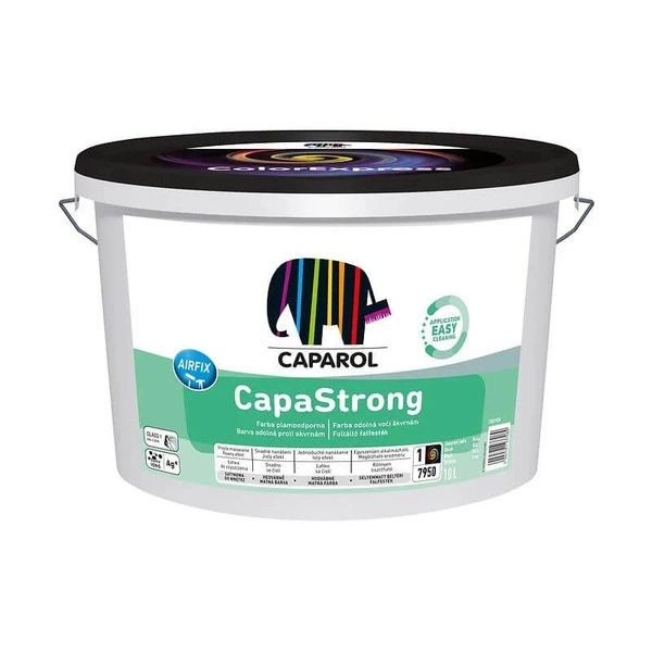 Farba CapaStrong to cienkowarstwowa, lateksowa, plamoodporna farba wewnętrzna, o specjalnej recepturze ułatwiającej łatwiejszą aplikację nawet na dużych powierzchniach. Nie zalewa faktury podłoża, przez co idealnie sprawdza się zarówno na gładkich, jak i teksturowanych materiałach. Tworzy powłoki odporne na częste mycie (1 klasa wg PN-EN 13300), ślady palców i wybłyszczeń po czyszczeniu. Idealnie gładką i równomierną powłokę można uzyskać w bardzo łatwy sposób nie tylko natryskiem, ale także wałkiem. Do malowania wnętrz, na ściany z gładzi gipsowych i gipsowych mas szpachlowych, z tynków cementowo-wapiennych lub dyspersyjnych, betonu, cegły klinkierowej i silikatowej, płyt gipsowo-kartonowych. Także na stare powłoki farb dyspersyjnych i na dobrze przylegające tapety typu raufaza czy tapety z włókna szklanego. Może być stosowana także w obszarze służby zdrowia np szpitalach, przychodniach itp.