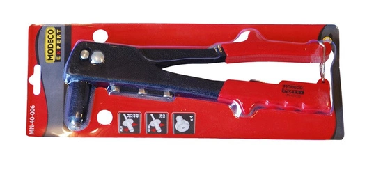 Nitownica blaszana MN-40-006 MODECO jest przeznaczona do łączenia elementów z blachy i aluminium. Doskonale sprawdzi się podczas prac remontowych, montażu konstrukcji metalowych, wykonywania napraw w warsztacie, a także w drobnych pracach domowych i hobbystycznych.