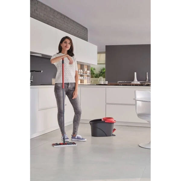 VILEDA komplet wiadro+mop obrotowy płaski ultramax turbo to innowacyjne rozwiązanie, które pozwala na szybkie i higieniczne sprzątanie każdego rodzaju podłóg. Dzięki zaawansowanemu systemowi obrotowemu wyciskania mopa możesz regulować poziom wilgotności wkładu bez moczenia i brudzenia rąk. Wkład z mikrowłókien skutecznie usuwa do 99% bakterii, nie pozostawiając smug ani uporczywego brudu. Ruchoma główka mopa umożliwia łatwe dotarcie pod meble, a teleskopowy drążek gwarantuje komfort użytkowania i dopasowanie do wzrostu. Zestaw obejmuje wszystko, czego potrzebujesz do efektywnego sprzątania domu.