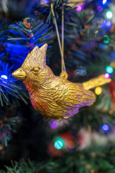 Atrakcyjna wizualnie zawieszka, którą przygotowano w kształcie ptaszka w złotym kolorze. Jest to dekoracja, która wprowadza mnóstwo ciepła i magii do każdego wnętrza, zwłaszcza w okresie Bożego Narodzenia.