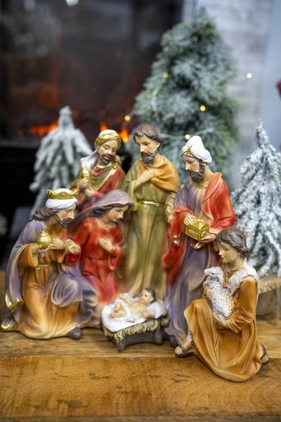 Wprowadź do swojego domu świąteczną magię i ciepło z wyjątkową szopką przedstawiającą świętą rodzinę i trzech króli – idealna ozdoba na Boże Narodzenie.