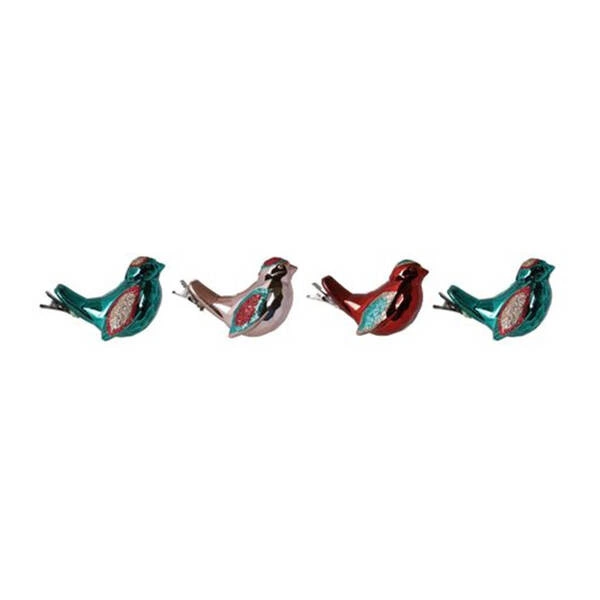 Bombki ptaszki wielokolorowe na klipsie 4 sztuki