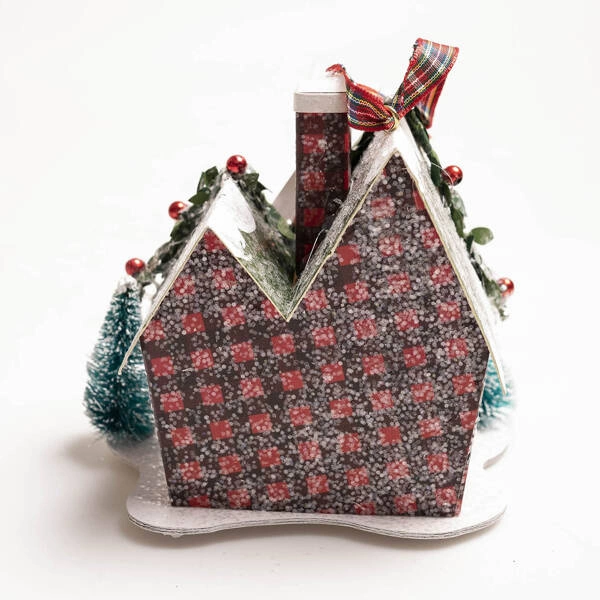 Zawieszka, którą przygotowano z kartonu i oklejono tworząc piękny zimowy domek, zdobiony charakterystyczną kratką. To dekoracja, która wprowadza do domu magiczny klimat, zwłaszcza w czasie zimy i świąt Bożego Narodzenia.