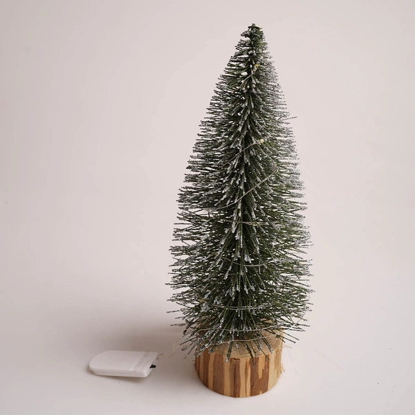 - Choinka szczotka LED ośnieżona, drewniana podstawa 25cm