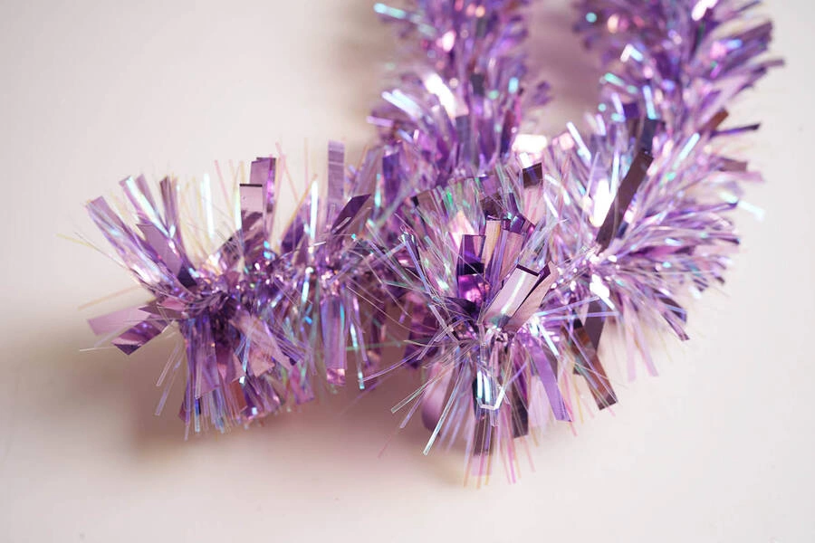 Sztuczna girlanda w pięknym, fioletowym, lekko metalizowanym kolorze. Może stanowić samodzielną ozdobę lub stać się częścią większej kompozycji dekoracyjnej, np. przy stroikach, na choince, w Sylwestrowym wnętrzu.