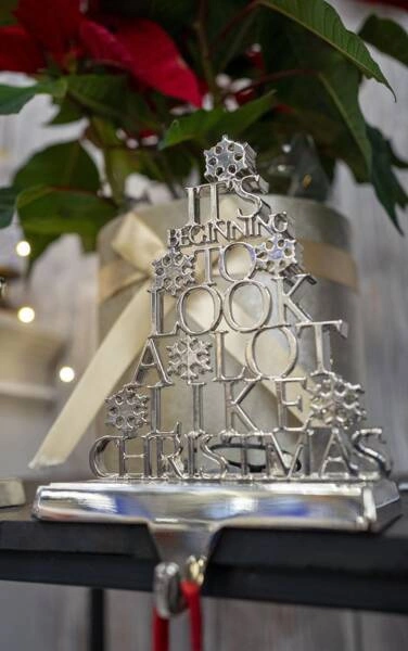 Dekoracja na kominek srebrna z hakiem na skarpetę