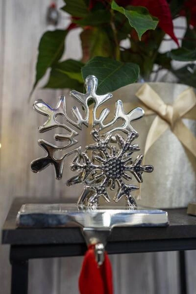 - Dekoracja na kominek srebrna z hakiem na skarpetę