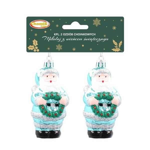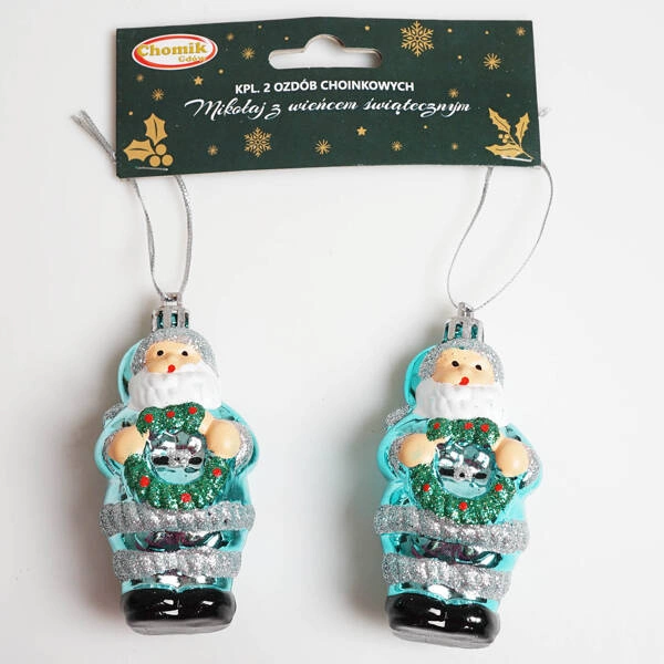 - Mikołaj z wieńcem Błękitny Komplet 2 sztuk zawieszek