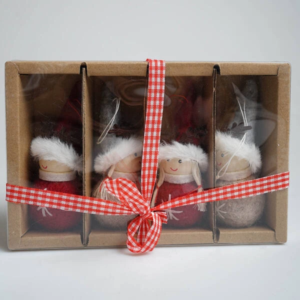 Zestaw zawieszek choinkowych, w kształcie makoszek utrzymanych w szaro-beżowo-czerwonych barwach. To dekoracja, która wypełnia czarem całe wnętrze domu, dbając o klimat i nastrój. Idealnie komponują się z okresem zimy i świąt Bożego Narodzenia.