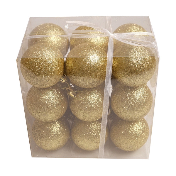 Urocze bombki choinkowe w klasycznym okrągłym kształcie, wykonane w złotym kolorze, oprószone brokatem. To dekoracja, która wypełnia czarem całe wnętrze domu, dbając o klimat i nastrój. Idealnie komponują się z okresem zimy i świąt Bożego Narodzenia. Opakowanie zawiera 18 sztuk.
