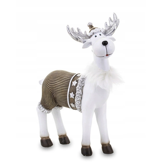 Bardzo atrakcyjna wizualnie figurka, przedstawiająca stojącego, białego renifera, ubranego w brązowy sweter. Jest to nawiązanie do najbardziej klasycznych ozdób świątecznych, przez co z wielką siłą przywołuje magię świąt Bożego Narodzenia, tworząc piękny i niepowtarzalny klimat.