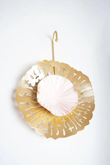 Haczyk w kolorze złotym i różowym, przygotowany z trwałego metalu i uformowany w kształt kwiatu. Łączy funkcję praktyczną i dekoracyjną.