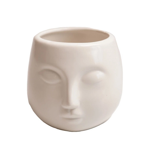 Wyjątkowej urody ceramiczna osłonka, przygotowana w kształcie głowy w białym kolorze. Idealna ozdoba każdego wnętrza, podkreślająca jego charakter i klimat.