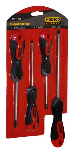 Zestaw wkrętaków 4szt. S MODECO to niezawodne narzędzie, które sprawdzi się zarówno podczas codziennych napraw, jak i bardziej wymagających prac montażowych. Zestaw zawiera cztery wkrętaki o różnych końcówkach i długościach, dzięki czemu pozwala na szerokie zastosowanie – od drobnych prac precyzyjnych po mocniejsze dokręcanie śrub. Ergonomiczne uchwyty zapewniają komfort użytkowania i pewny chwyt, a solidne wykonanie gwarantuje trwałość i bezpieczeństwo pracy.