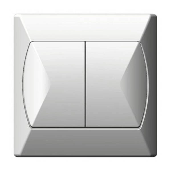 Włącznik świecznikowy podwójny Biały Akcent to elegancki i funkcjonalny element instalacji elektrycznej, który pozwala wygodnie sterować dwoma niezależnymi obwodami oświetleniowymi. Montaż podtynkowy w standardowej puszce Ø60 zapewnia estetyczne wykończenie, a biały kolor i geometryczna forma wpisują się w nowoczesne wnętrza. Dzięki solidnej konstrukcji z tworzywa sztucznego i metalu oraz znamionowym parametrom – 10 AX i 250 V – gwarantuje niezawodne działanie i bezpieczeństwo użytkowania.