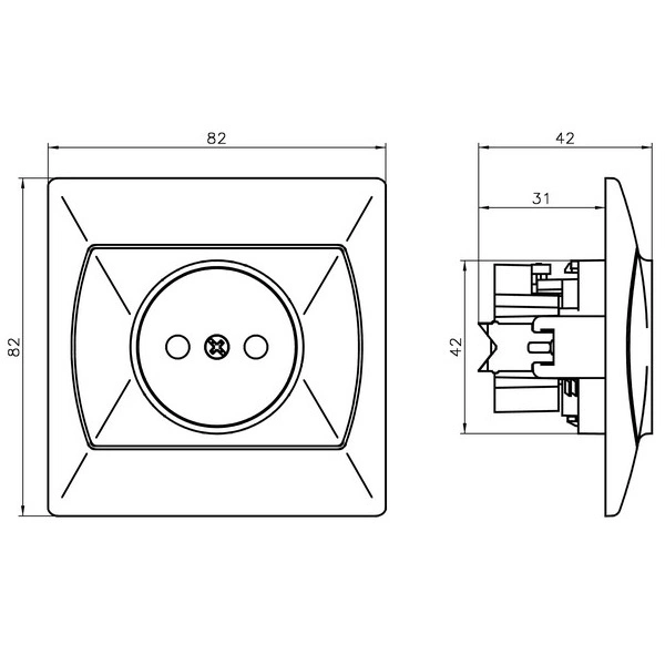 - Typ produktu: gniazdo pojedyncze bez uziemienia